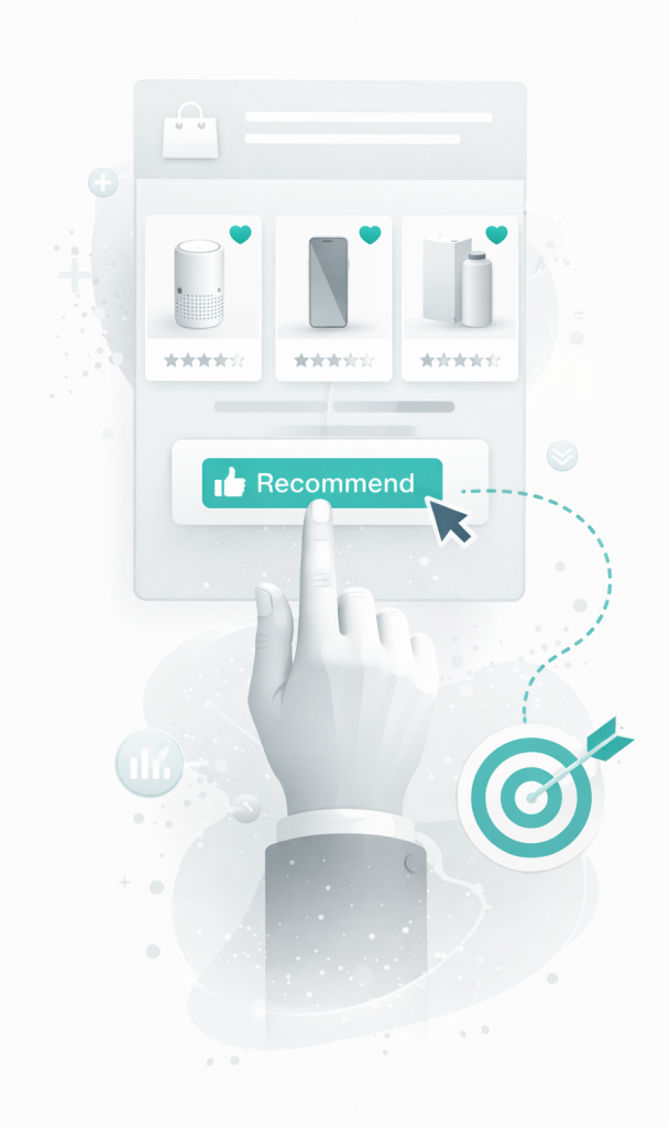 Steigere deinen Umsatz mit KI-basierten Produktempfehlungen. Individuell ausgespielt für Kunden im Vertrieb, Shop und Marketing.